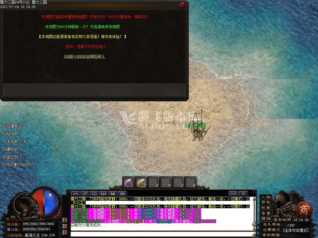 抗日BOSS爆率: 70%出专属终极首饰 30%出顶级专属剑甲!必爆!
