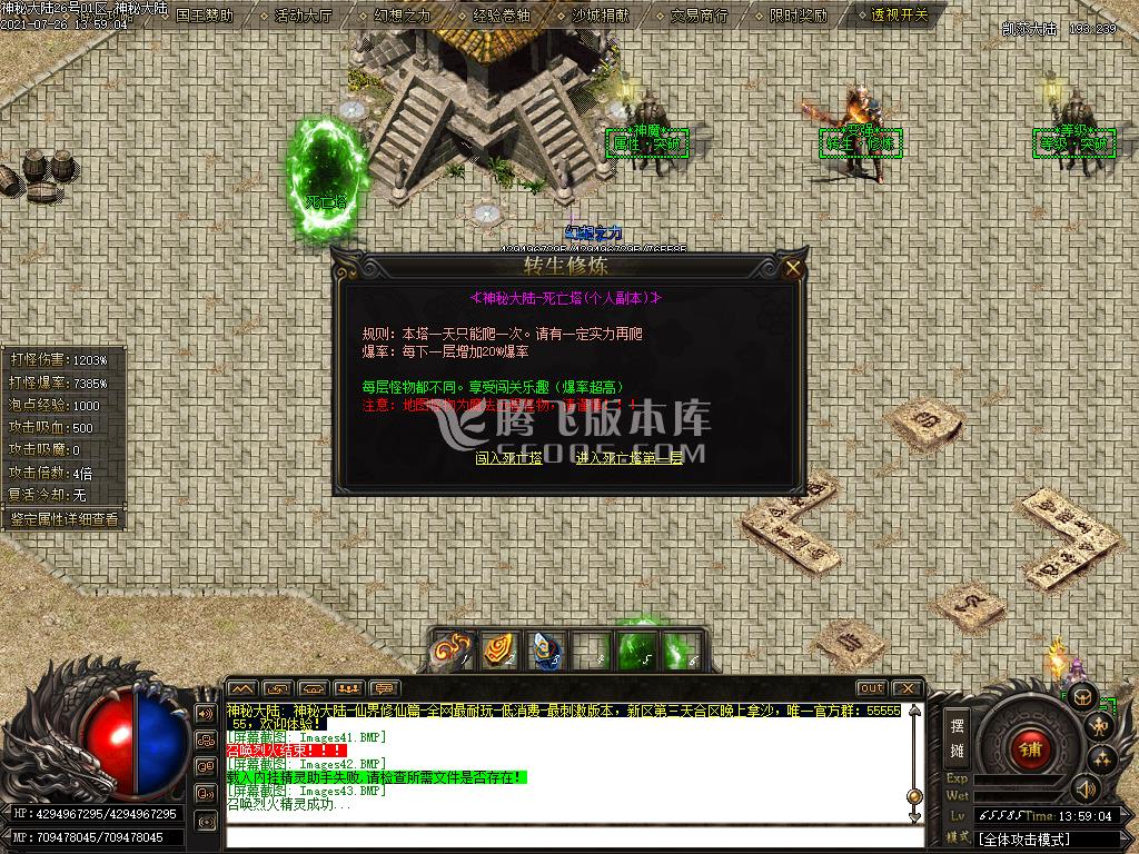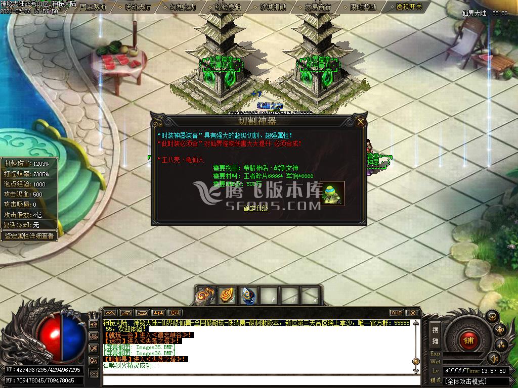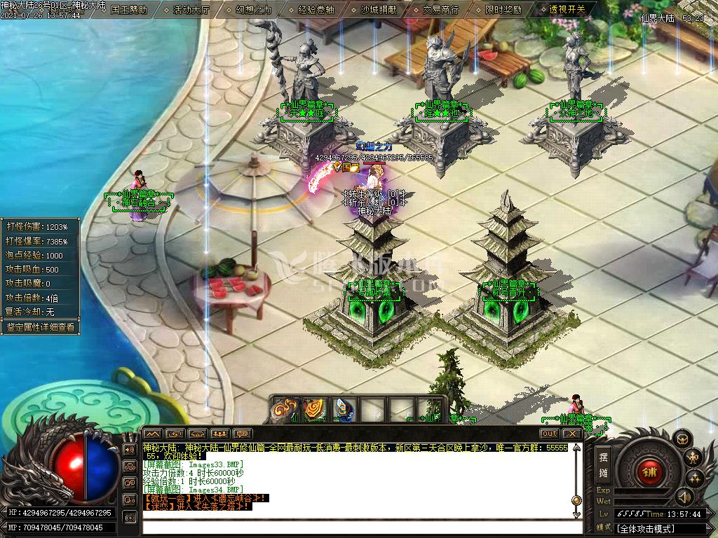 7月八号仙界大陆单职业无限刀专属版-带假人光柱-透视爆率-全屏切割-自动挂机
