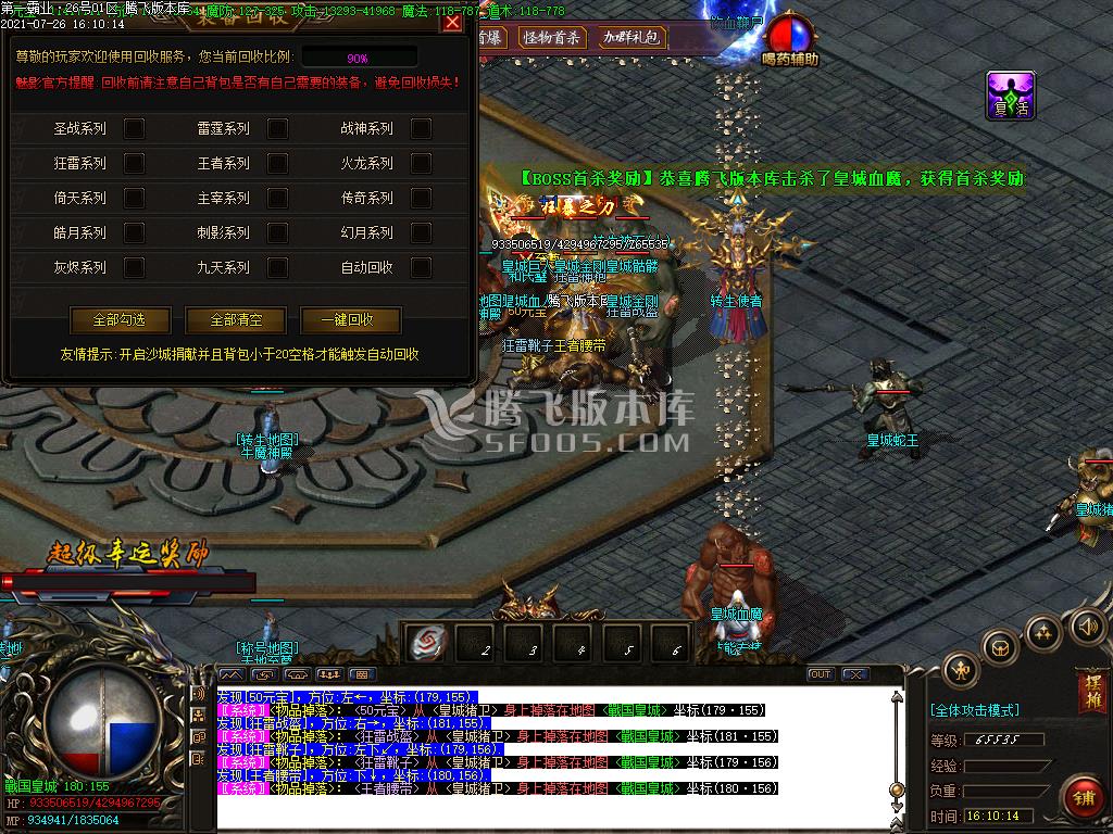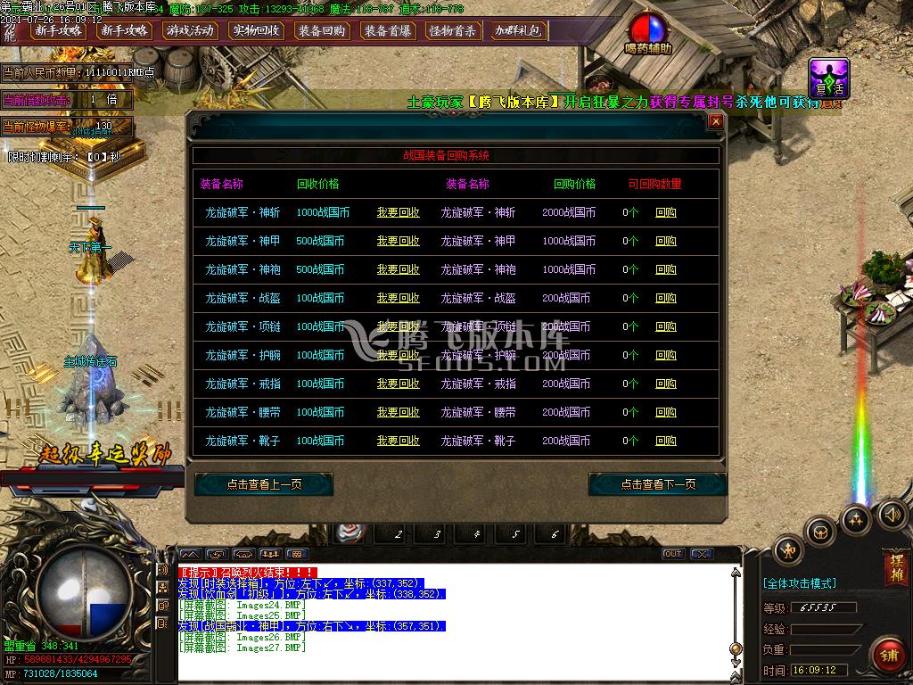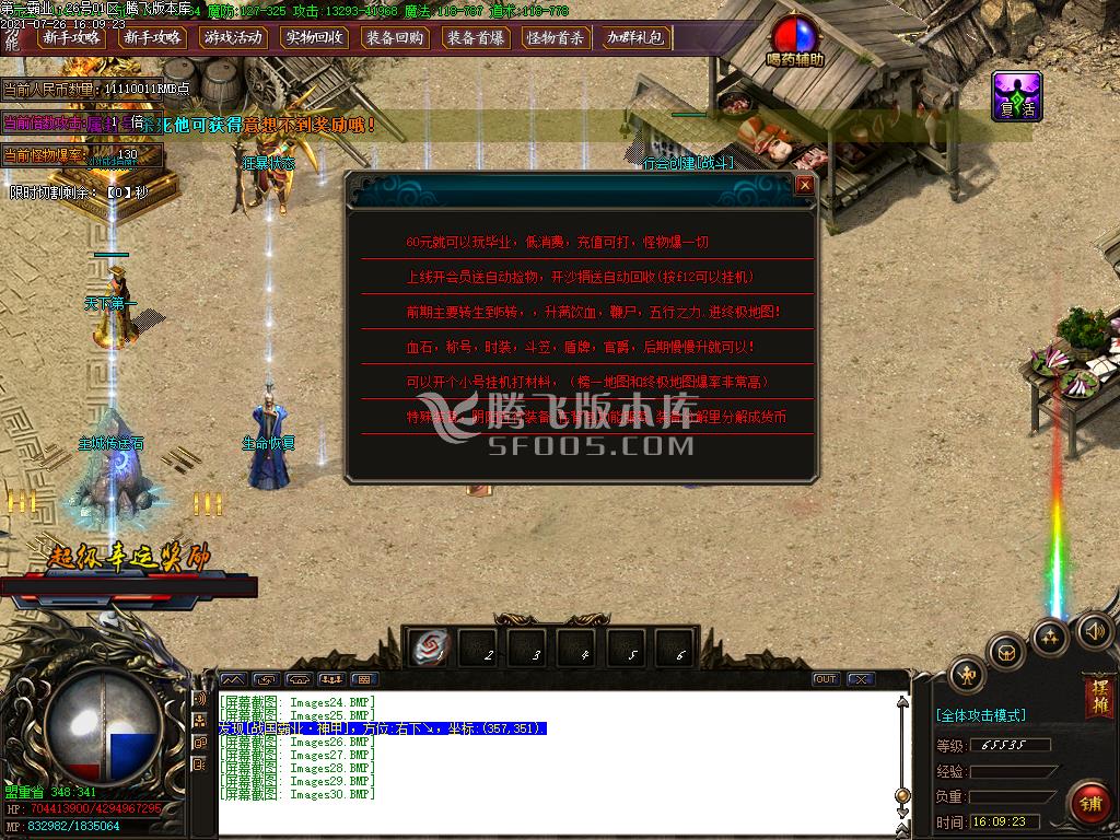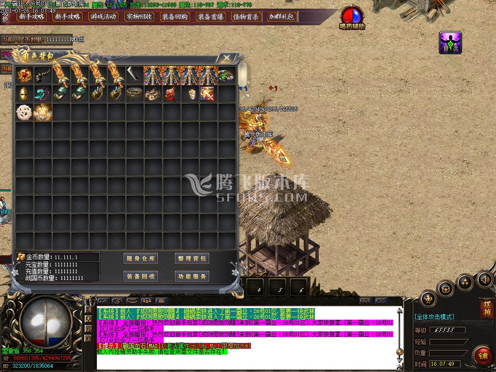 7月霸业火龙散人怀旧单职业-带假人-带光柱-带攻略-大背包-沙城捐献-自动回收