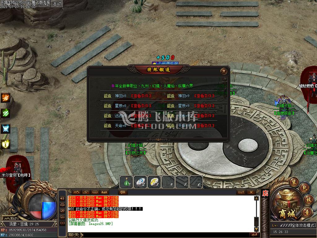 : 7月天境大陆专属神器激情单职业-带假人-带光柱-大背包-沙捐