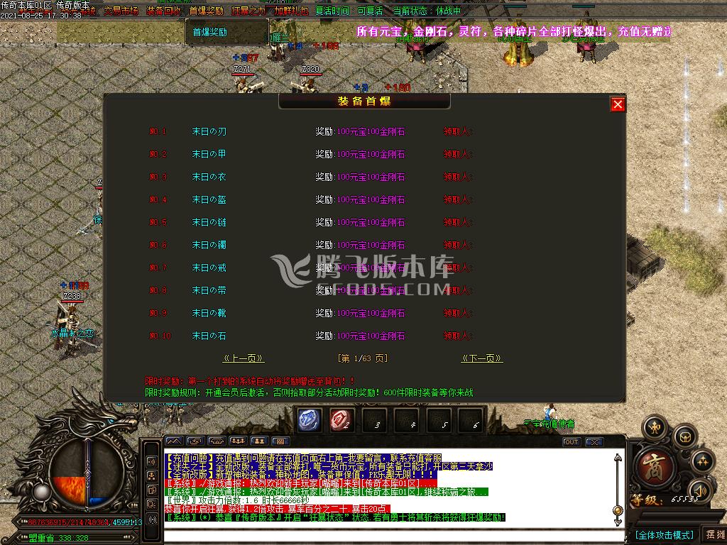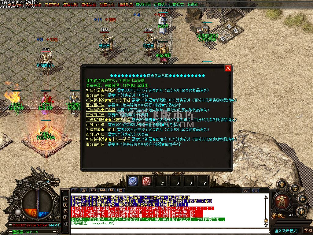 版本介绍:更新神秘装备,PK神器,耐心+脸白,散人逆袭吊打土豪!回归原始迷失!2021