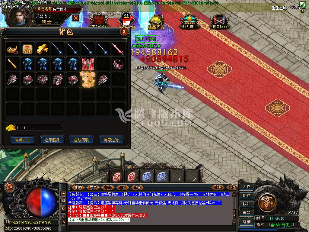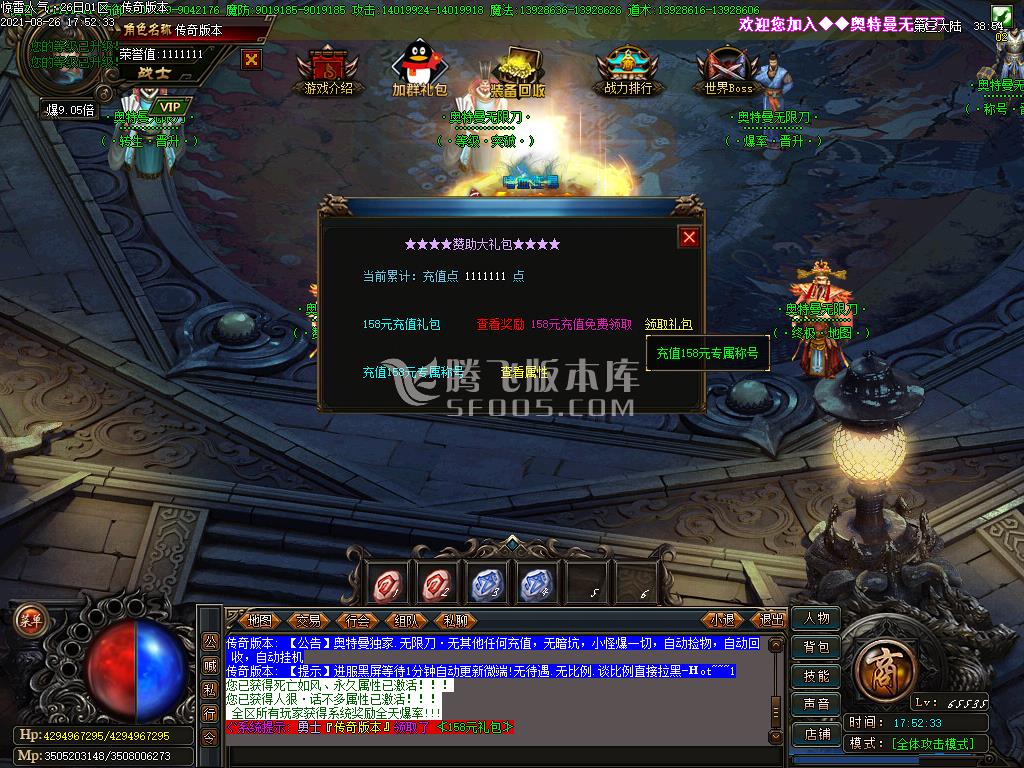 8月奥特曼神器无限刀单职业服务端下载-限时奖励-免费礼包-渡劫系统-终极称号