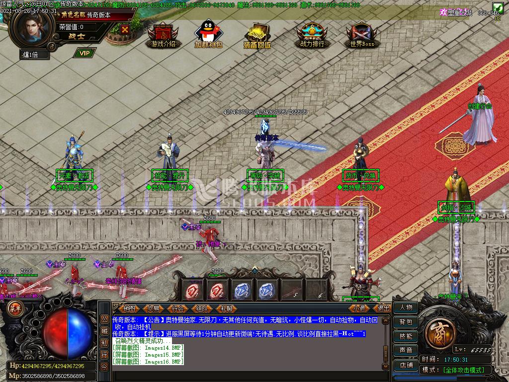 攻城奖励: 88现金 -- 188现金 根据人数决定最低88,登录器公示,沙巴克老大领取分配。
