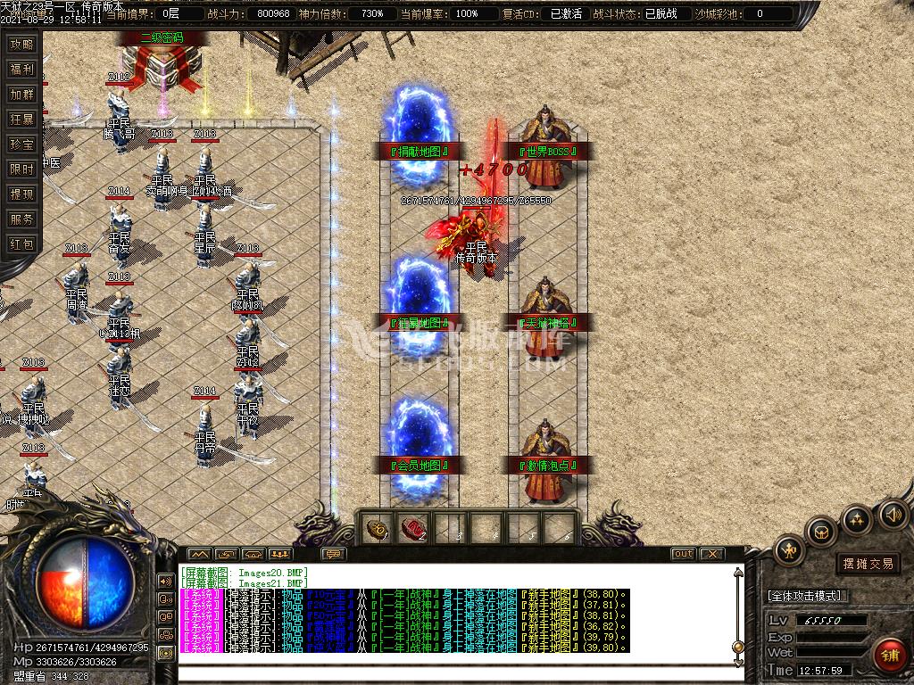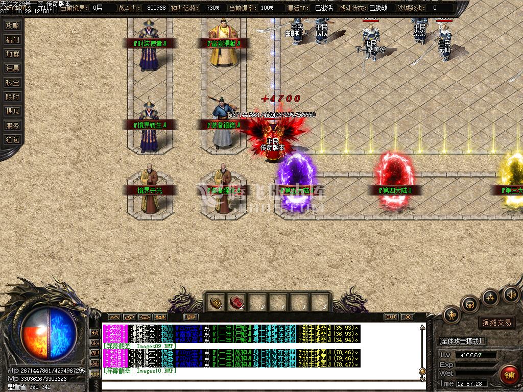 玩法路径:不管你是几档充值号,第一天先去一大陆刷材料,元宝,经验,转生证明,