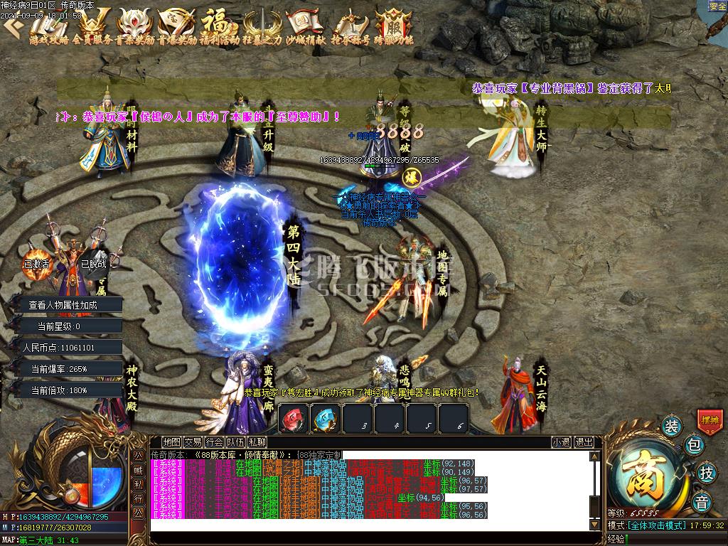 4月远古1.76小极品+3公益三职业-智能假人-狂暴之力-人名币回收 -高级魔法师