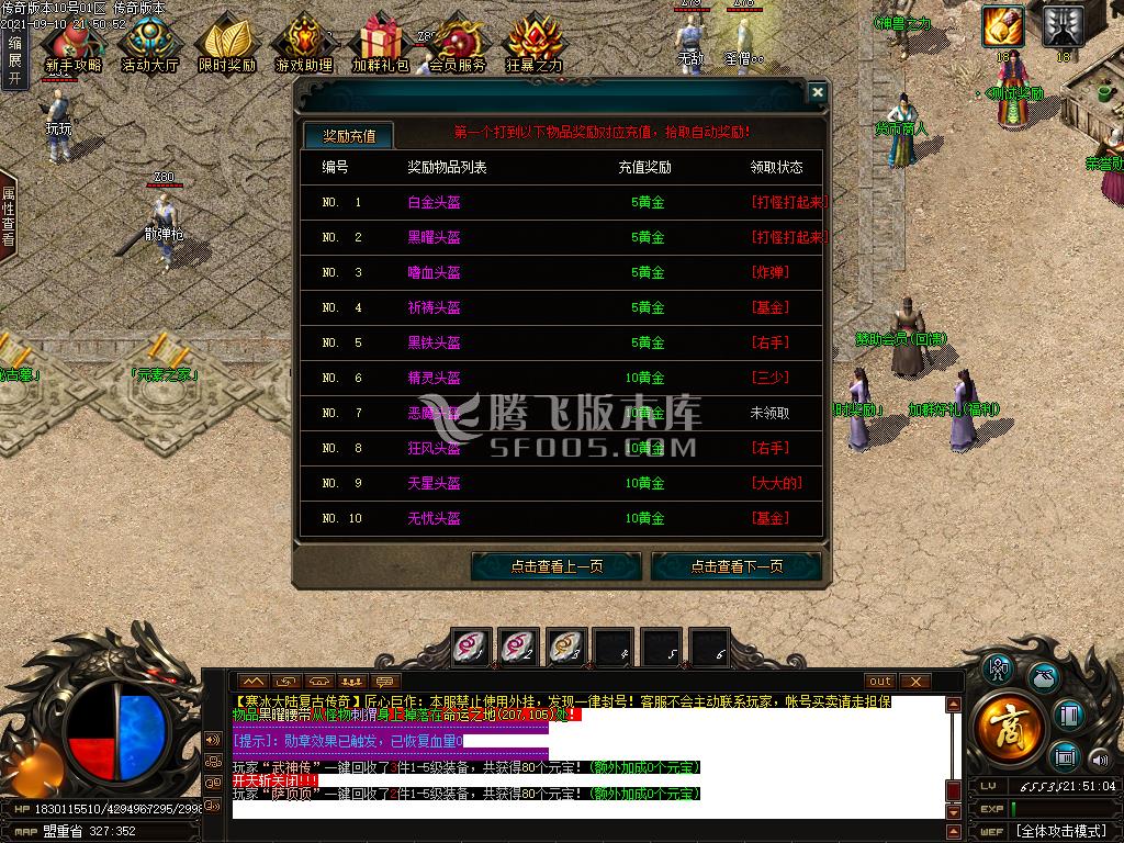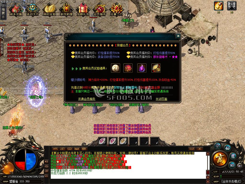 9月寒冰大陆神器单职业服务端-技能强化-装备强化-异界副本-会员商店-限时奖励
