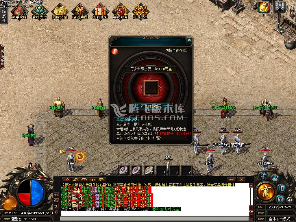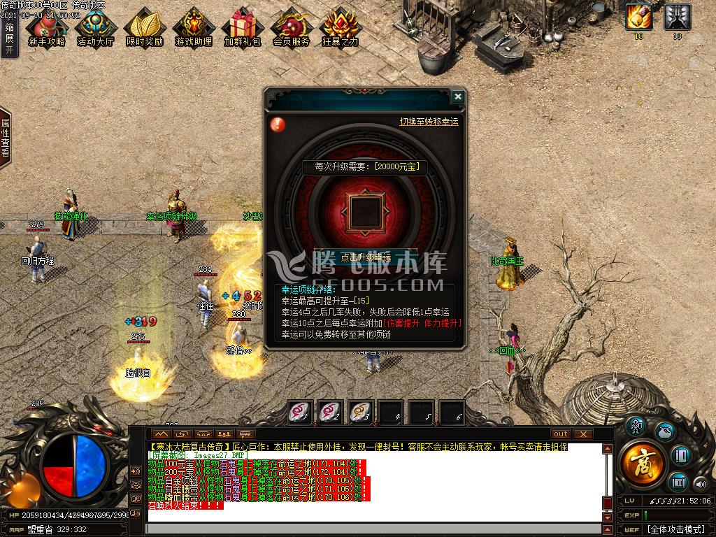 3.项链幸运+7和装备强化+9这个打到元宝或有条件也可以直接搞满!可以提升打怪速度!