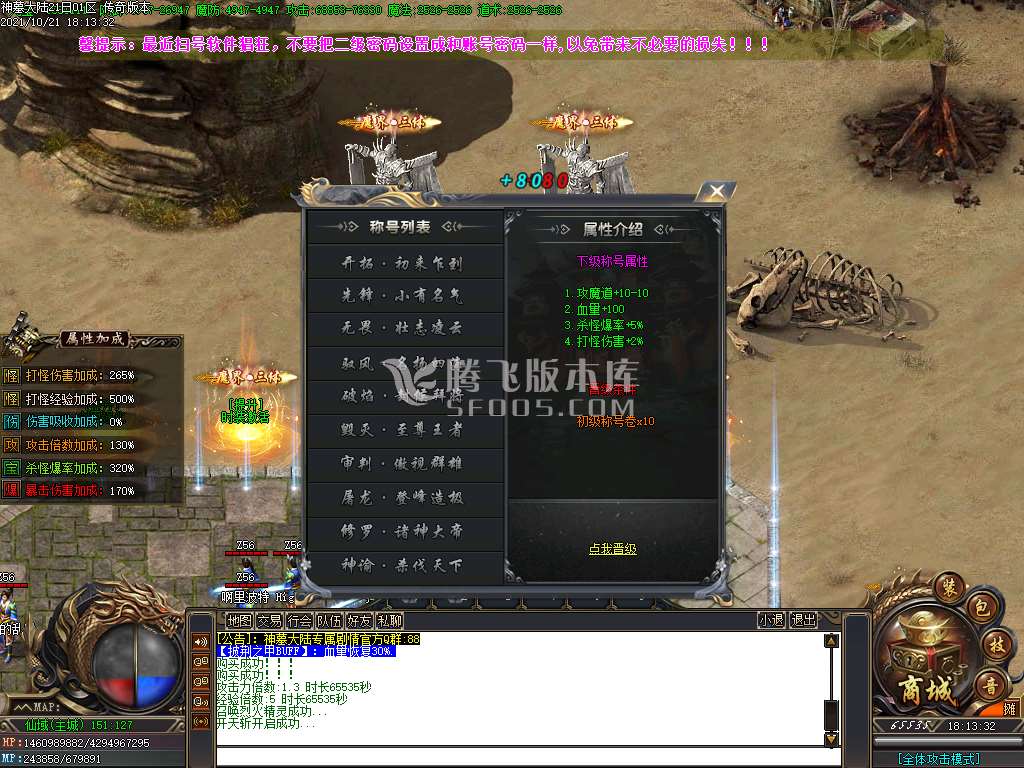 【版本说明】努中原荒野-封魔之城-此奇之城-白日门-仙域世界-轮回之路
