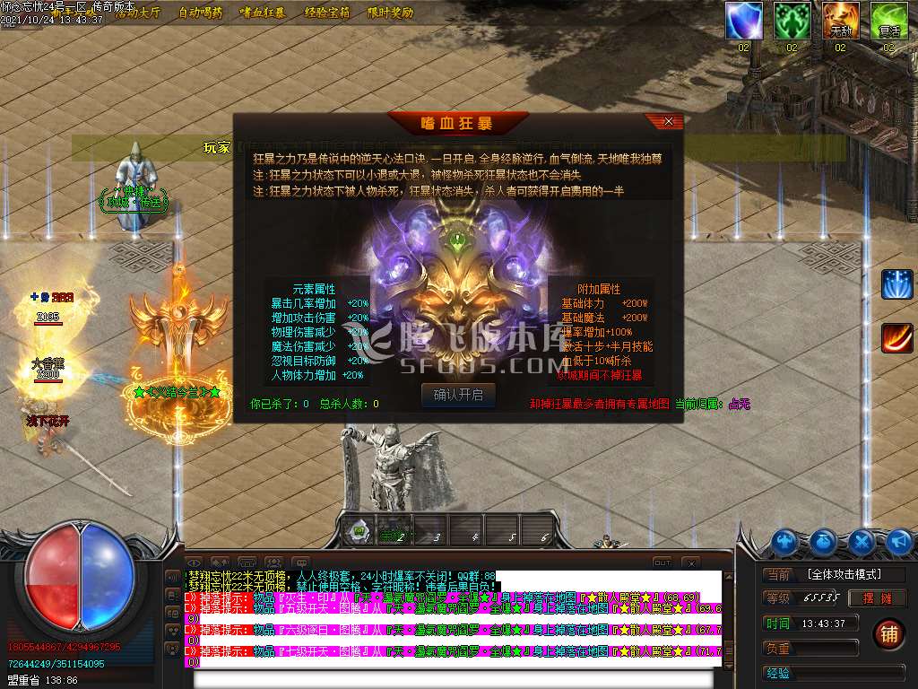 本服22全满,沙城捐献20.,狂暴2.,新手上线打经验宝箱升级,等级可升到450级