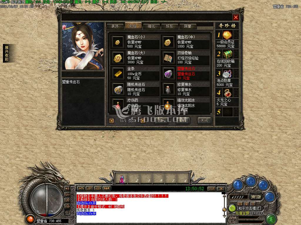 10月1.80傲世火龙三职业商业版本库-带假人光柱-自动回收-神秘合成-技能兑换