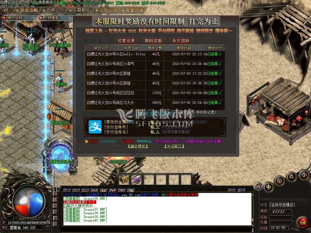 2:游戏所有白天到账时间下午1-2点.晚上12点之前当天的所有就会到您的支付宝.请大家监督即可!!!