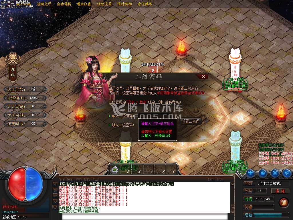 满级时装600元 几率斩杀怪物5000W血量 (有7张地图) 一大陆4张图 二大陆3张图