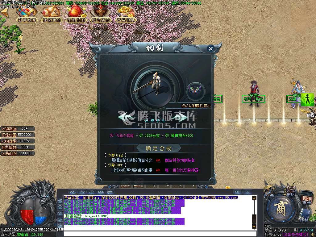 9.切割锻造:增加的伤害,倍攻,BUFF属性,需要的材料元宝 →  具体游戏NOC查看介绍