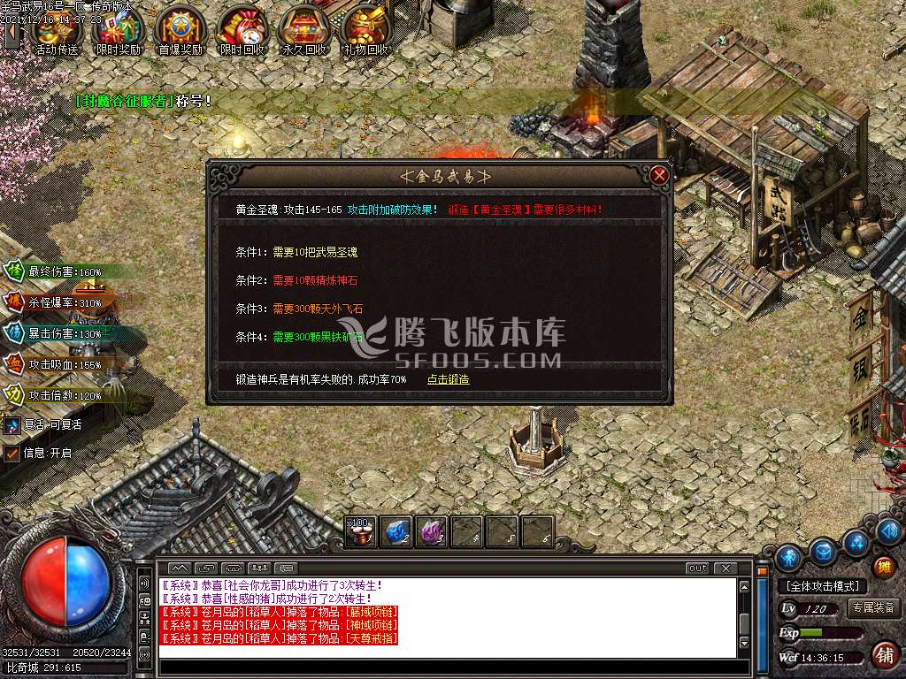 【黄金圣魂】:制作地点 <比奇城> 需要材料:10把<武易圣魂>+<精炼神石>+<天外飞石>+<黑铁矿石>