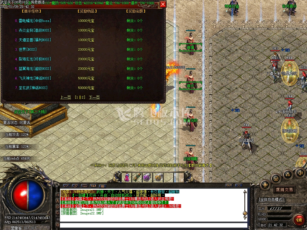 佩戴超神器ㄨ大圆满攻击触发[武圣天下[终究BOSS]]切割5%HP5000000,武圣天下[终究BOSS]爆本服所有装备,爆率是一般BOSS的10倍。