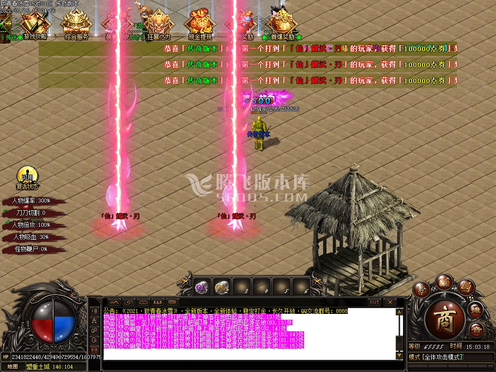 上古·BOSS掉落次终级以下装备 特殊装备 实物疯狂爆。完全看脸大服,良心巨作| 5转转生 60分钟1只. 切割地图 60分钟5只. |