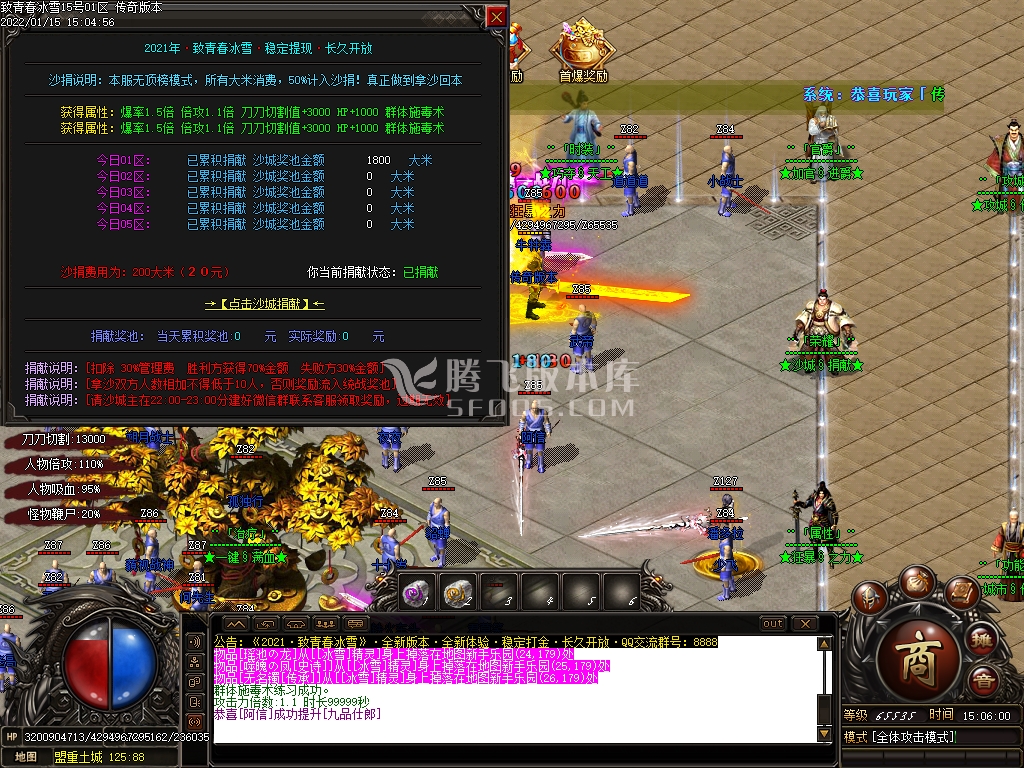 土豪档 总切割=98000切割值 打怪快 增加N倍血量 专属地图 |