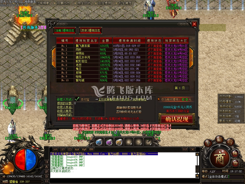 1月1.80上岛苍天火龙复古金单职业一条龙商业服务端-血石锻造-切割龙珠-时装锻造