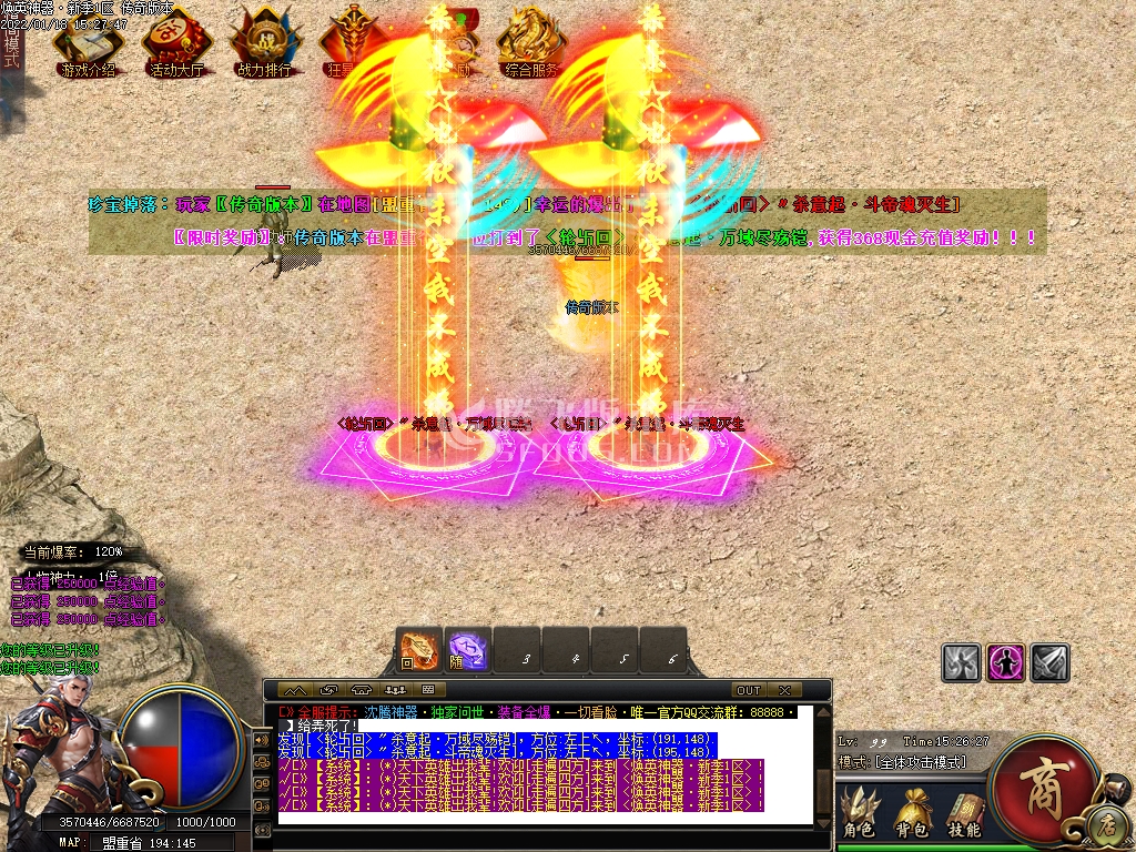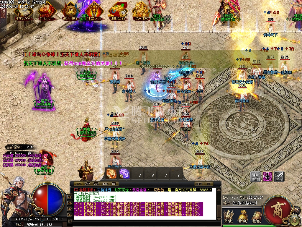 攻沙保底:开区第二天下午16.00合区.第二天晚8点攻沙.奖励万元9