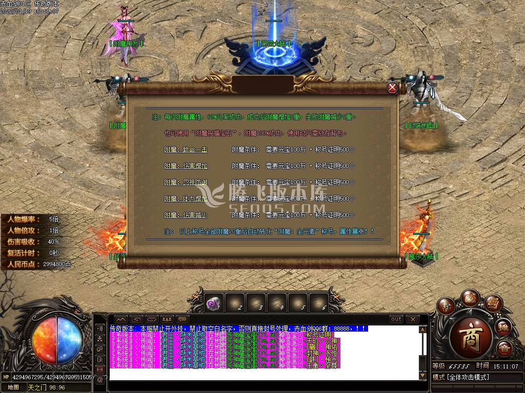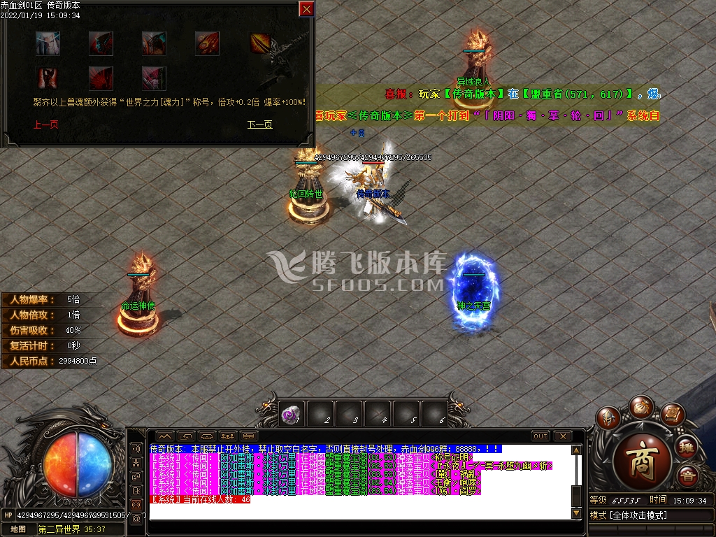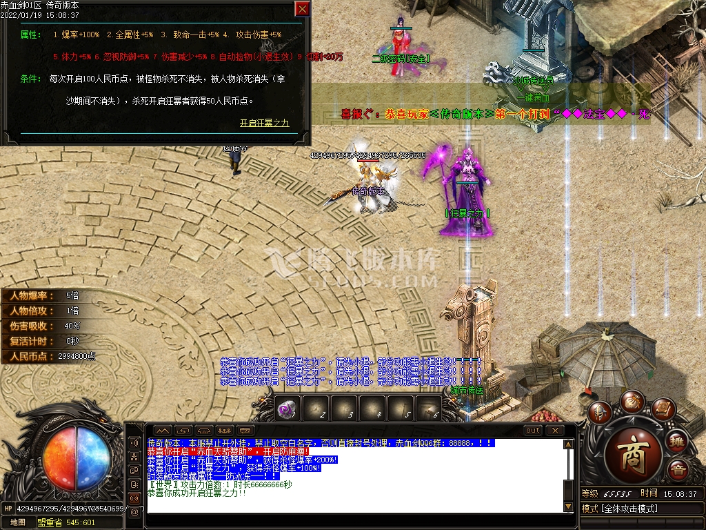 版本介绍: [装备爆率] 永久开放爆率,千件专属.装备保值.账号保值