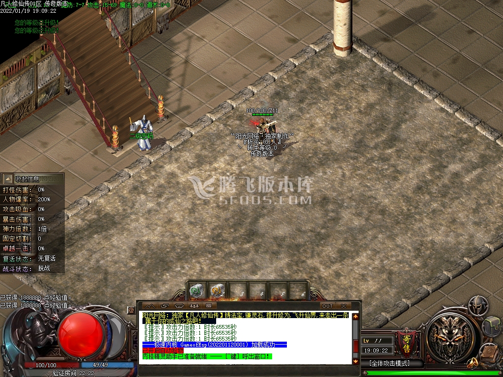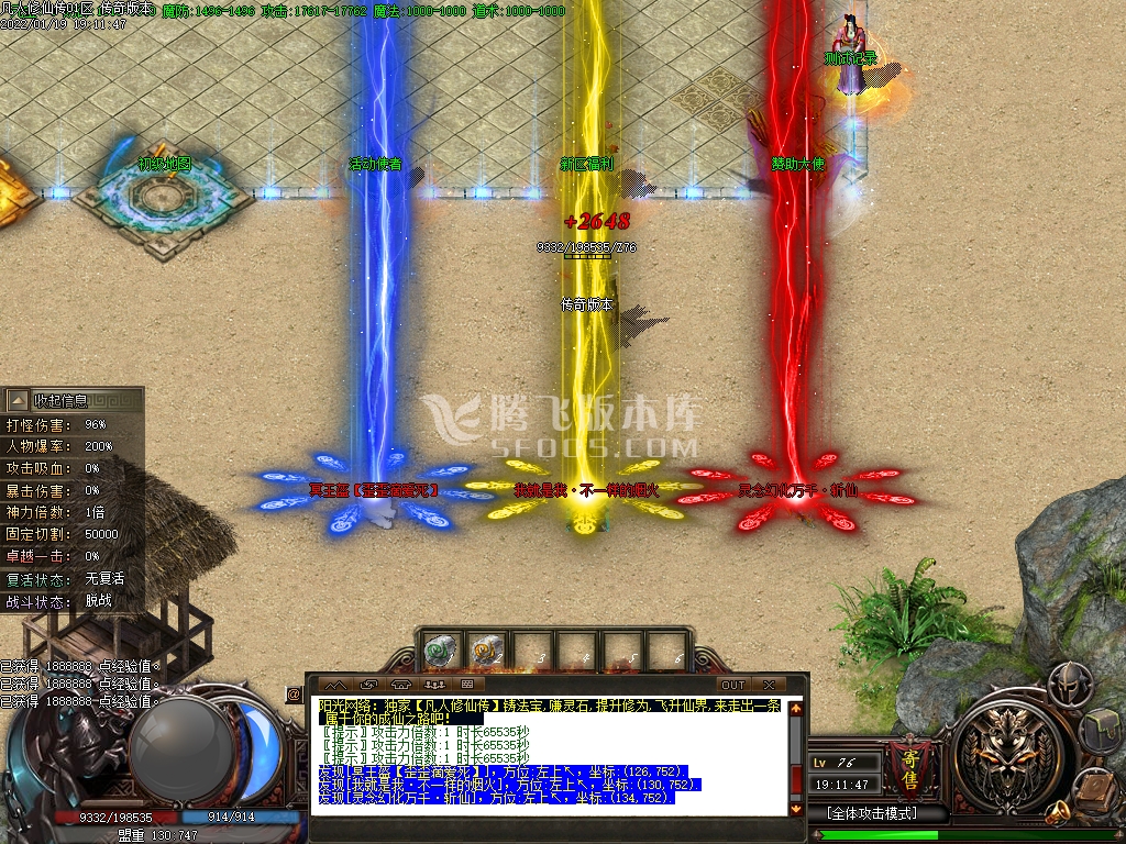 5.大陆共分为:仙界-神域-魔督-妖族-灵界。越后面爆率越好 无充值地图 无充值合成 只要用心玩都会毕业 为散人而生
