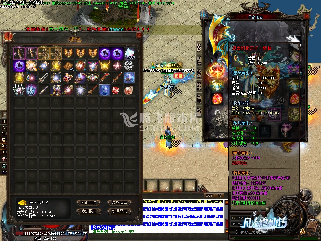 5:本命法器:上线赠送,打怪进阶,爆率+血量,仙界地图游侠进阶快