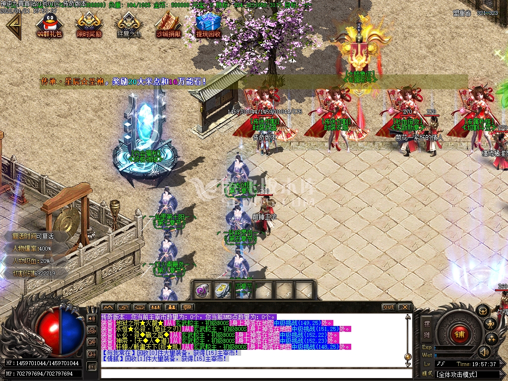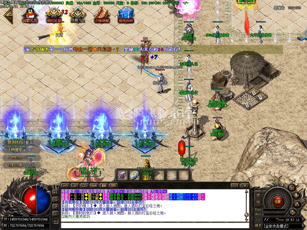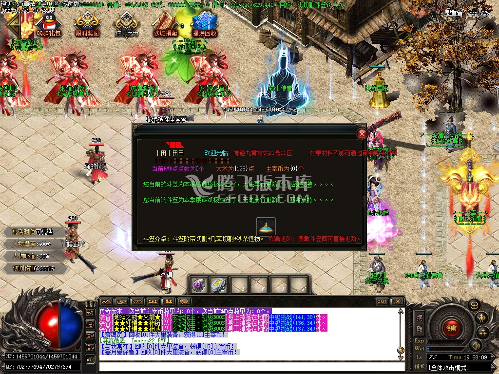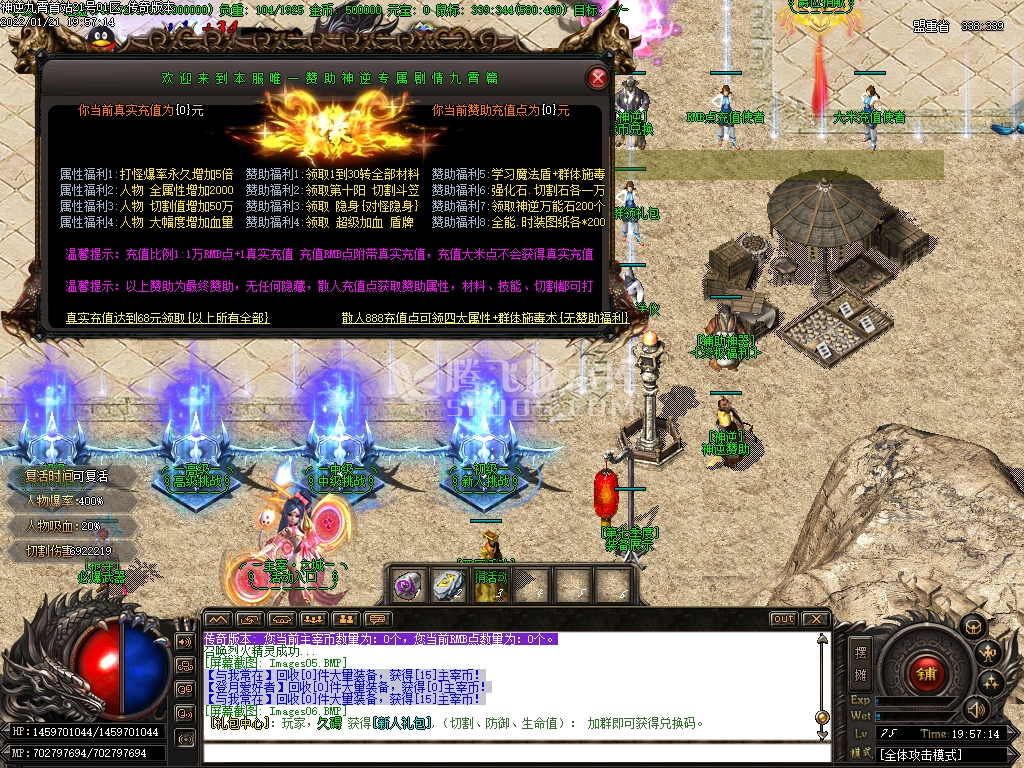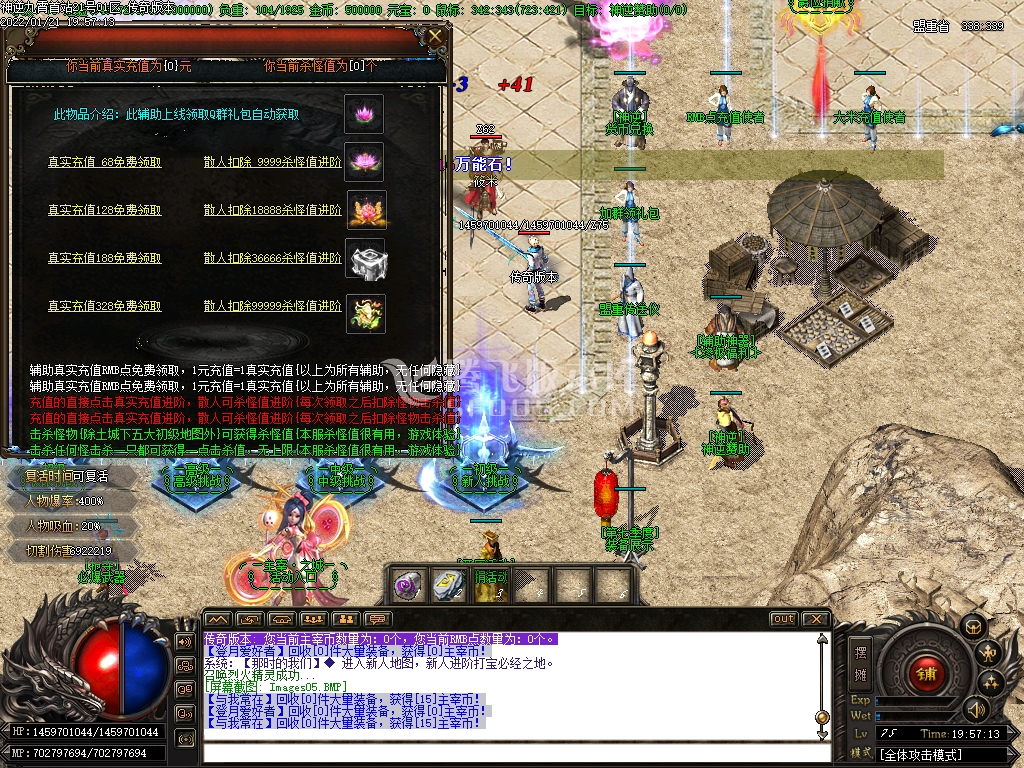 上线赠送:【大背包+自动拾取+自动收+切割10W+倍攻勋章+超血盾+超级大爆】68玩转全服大陆,免费自动挂机