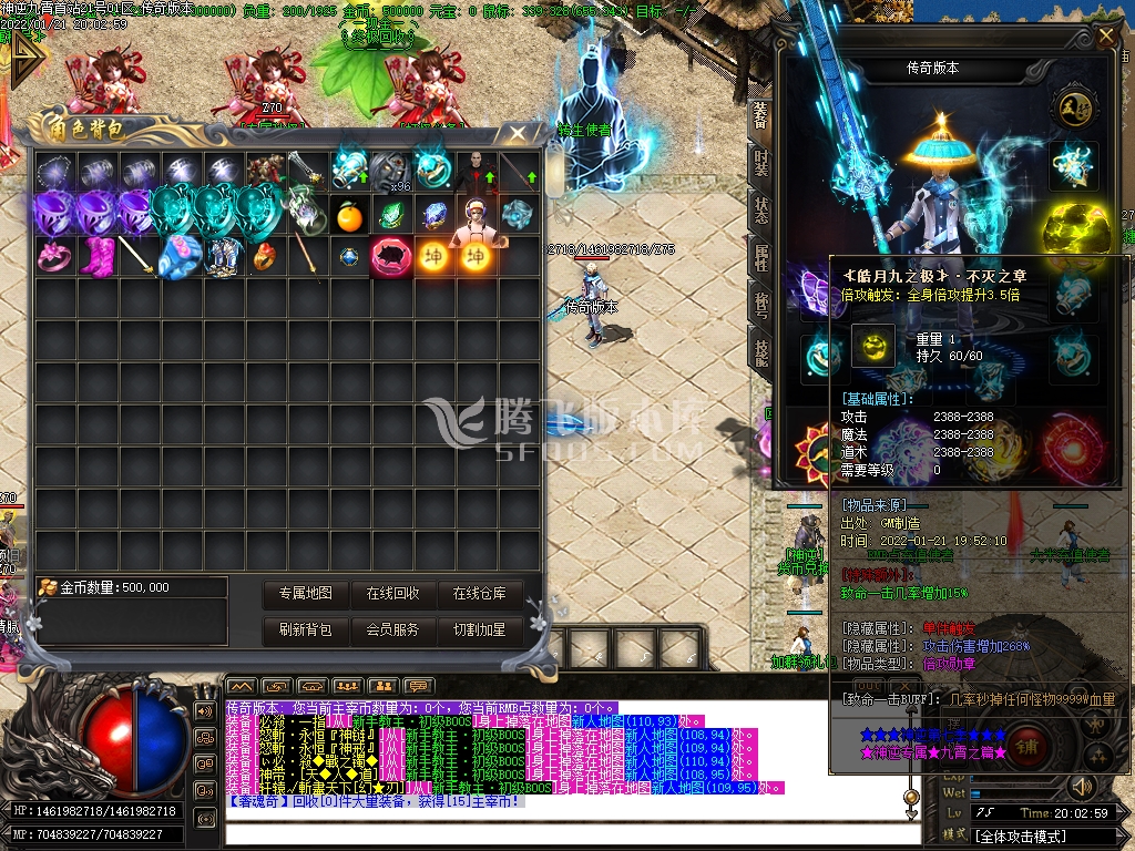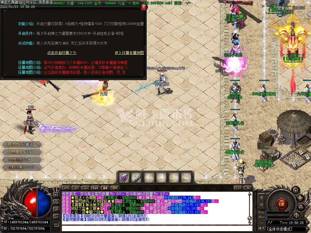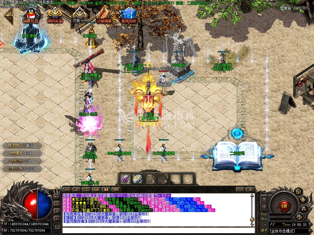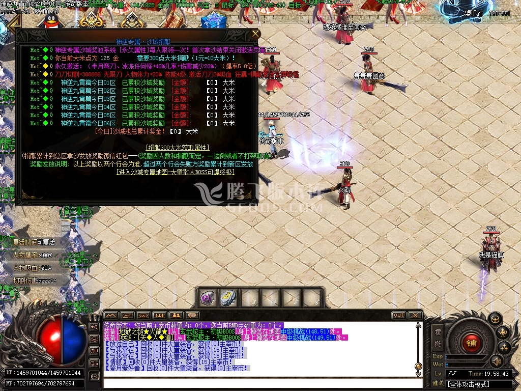 大背包+自动拾取+自动收+切割10W+倍攻勋章+超血盾+超级大爆】68玩转全服大陆,免费自动挂