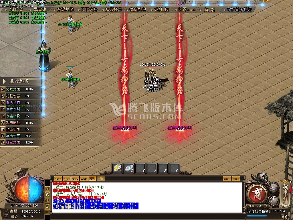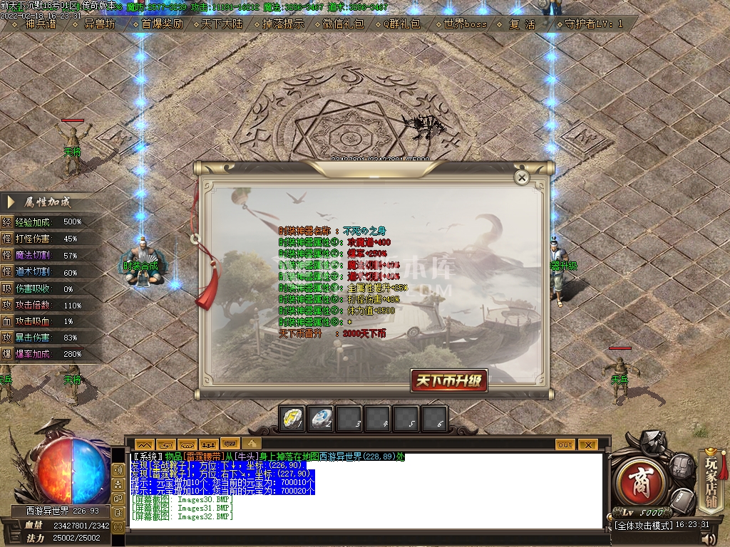 2月新天下沉默单职业传奇商业服务端-西游挑战-时装神器升级-装备加星-神之天赋