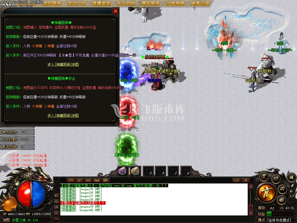 终极地图:共2层.1层怪物比较集中.2层地图超大安全区域不可PK.(可容纳10人同时打怪)