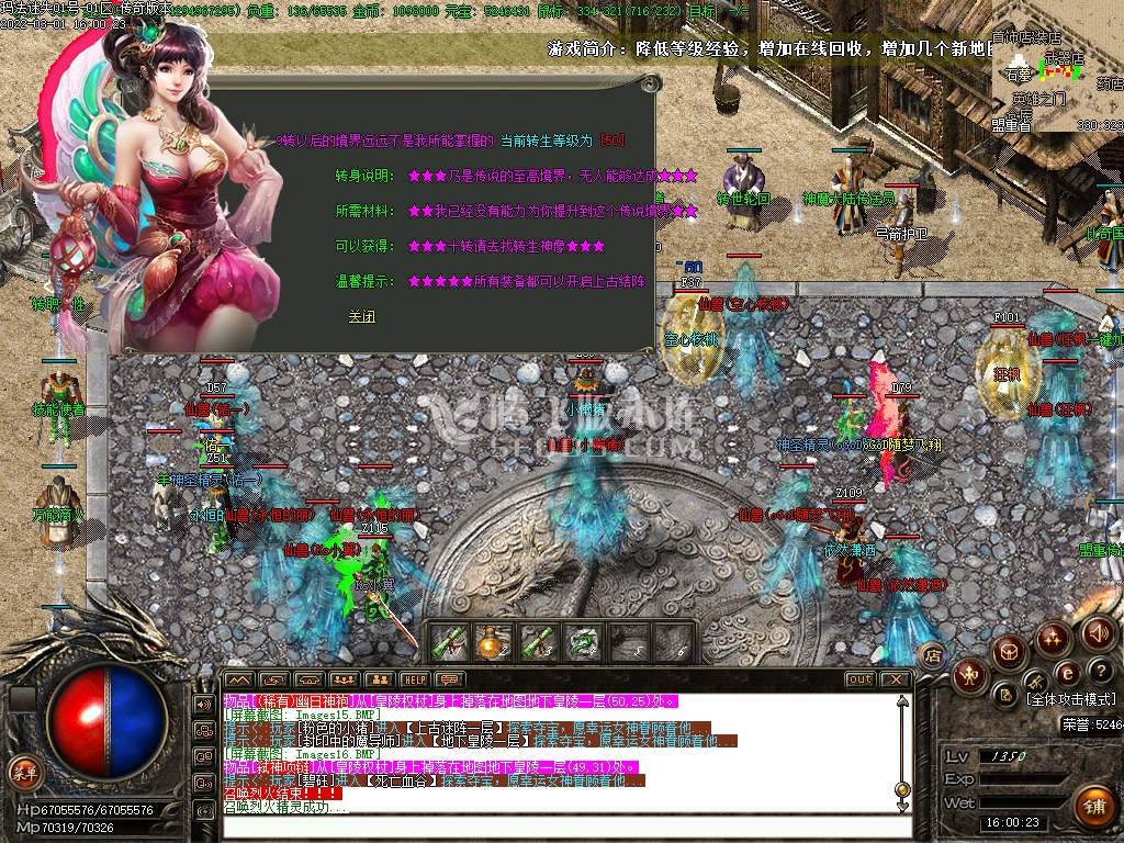 玩法介绍:本服为三职业版本,前期各职业属性均衡,后期战士为主,遇神杀神,与魔杀魔