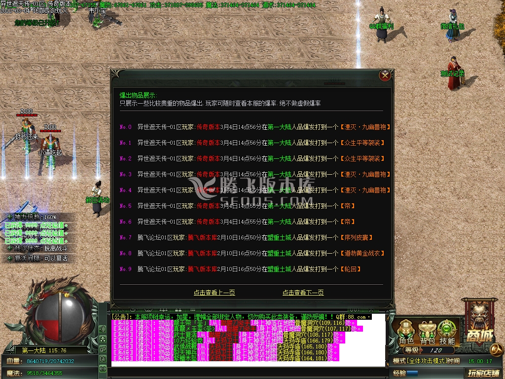 爆不爆谁知道 刷新地点:比奇遗迹(337,342) 60分钟