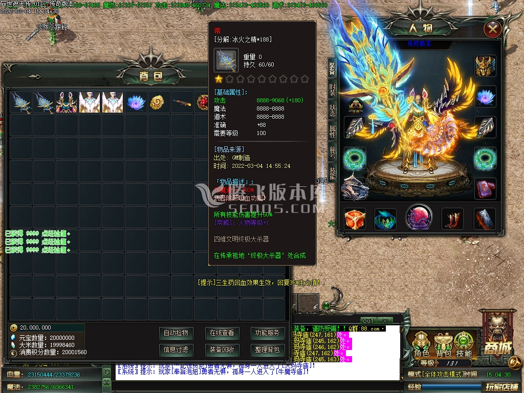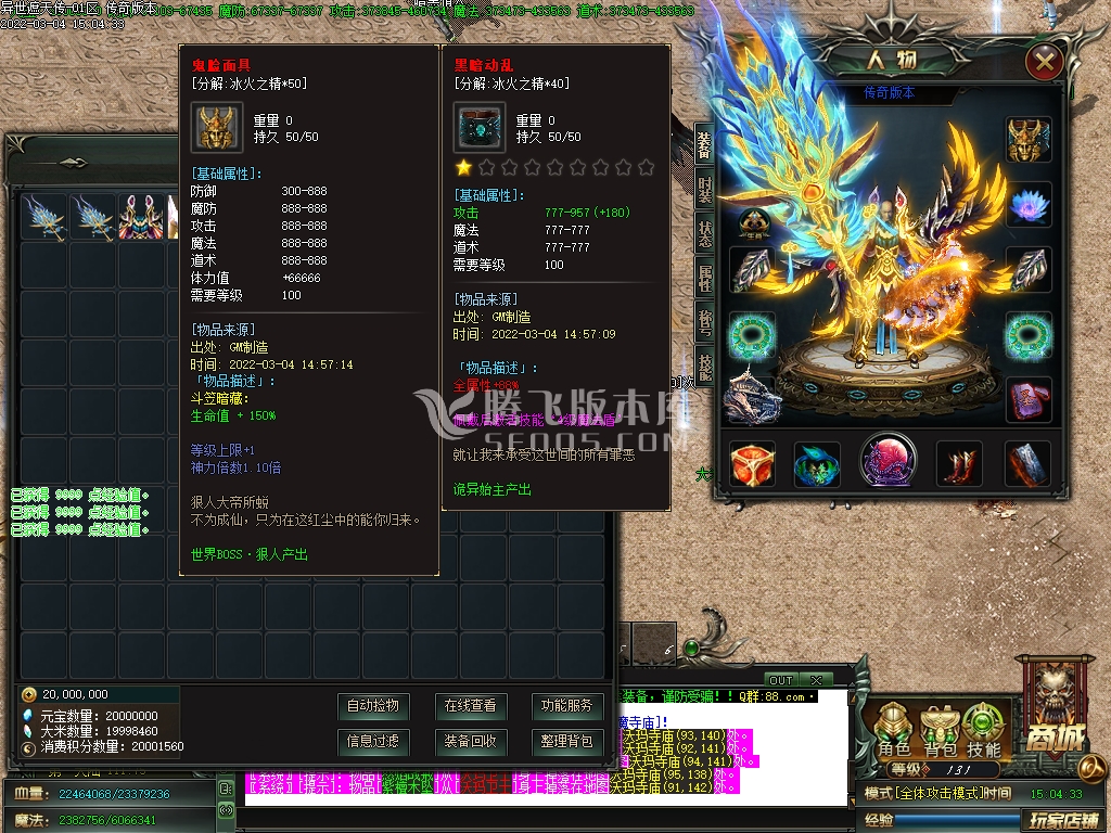 100元套餐:AK47 + Ψ毁灭神Ψ + ∞太虚∞ + 1000%爆率 + 全身装备星级+18 + 材料获取+1 + 四维空间直飞