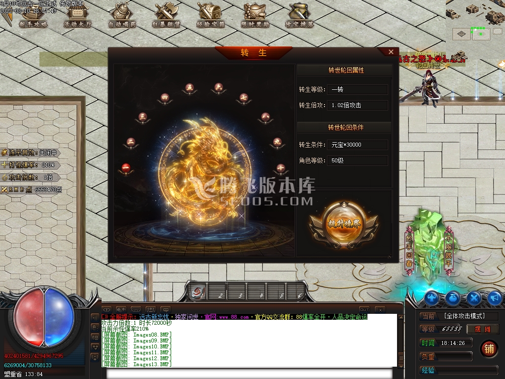 6转 20个 帝王觉醒石 220级 倍攻:1.14 (有专属地图)