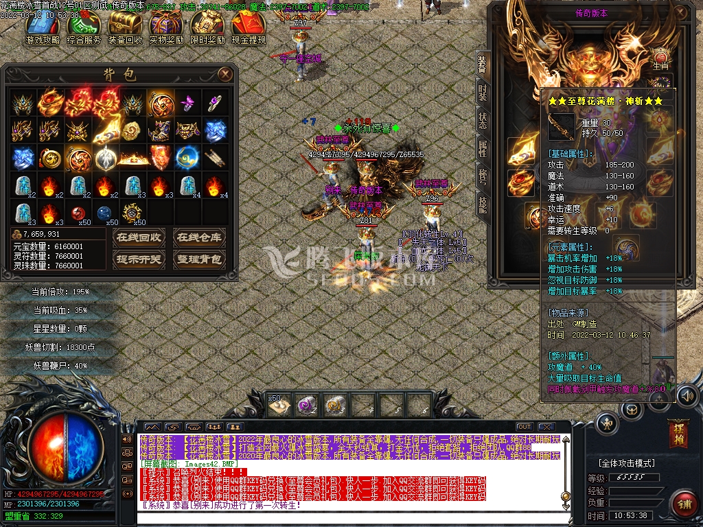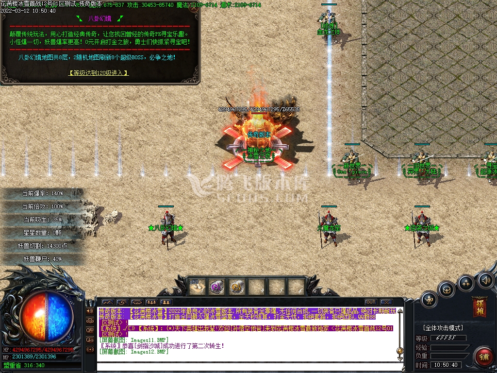 5:开放首爆奖励多名额,大怪小怪全部都爆终极,人人都能打首爆,所有装备在合区前都可爆出 坚决不做任何限爆