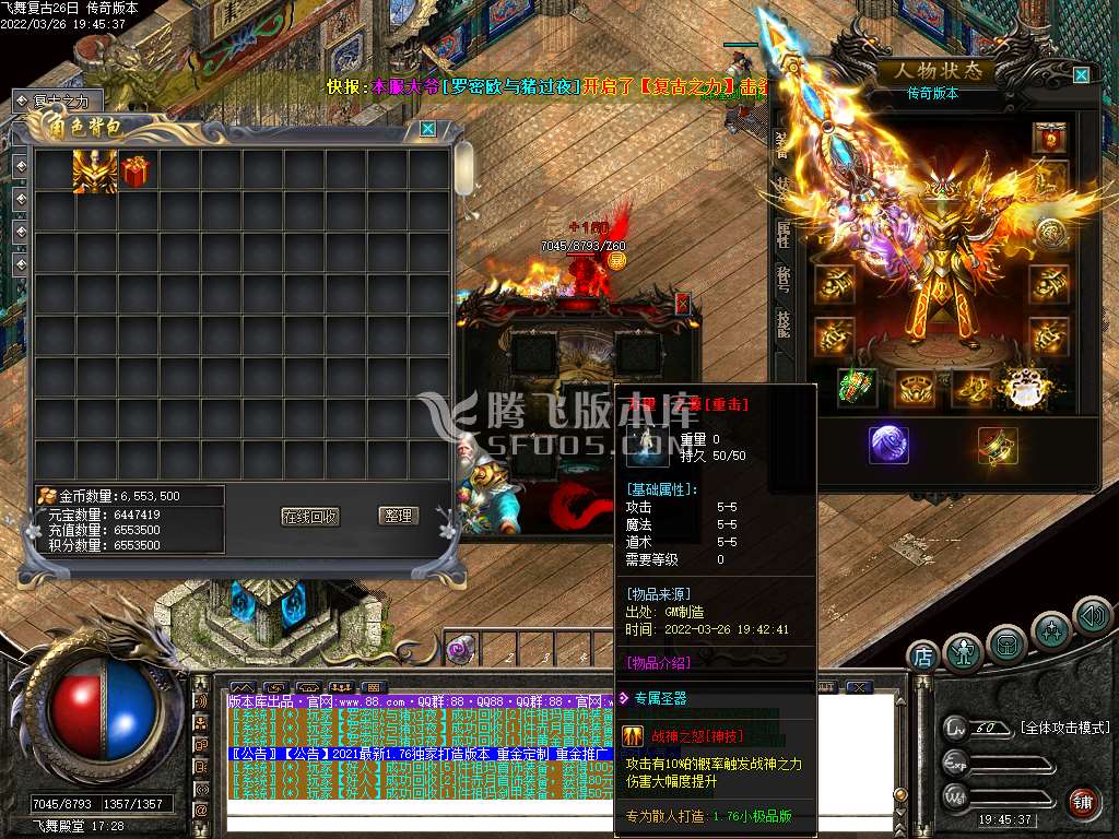 3月最新独家1.76飞舞复古小极品三职业商业服务端-装备重鉴-成长战鼓-特殊打造 [修改]