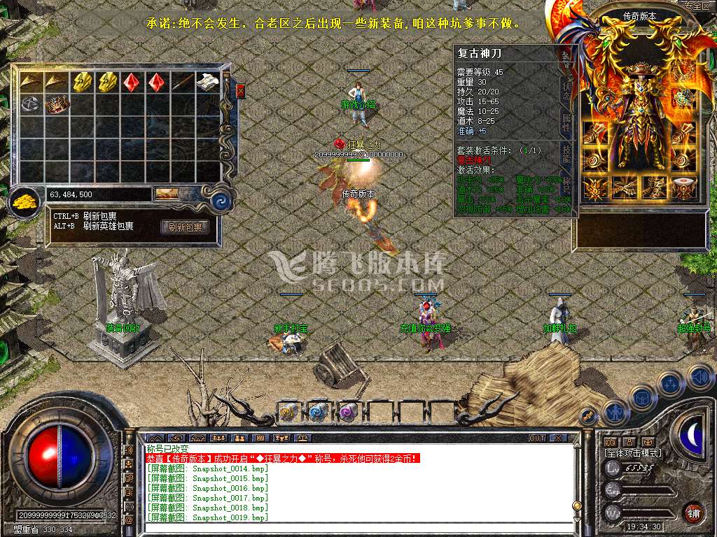 游戏特色:本服一切物品技能靠打.装备保值.召集玩家入驻.铸造绿色游戏!