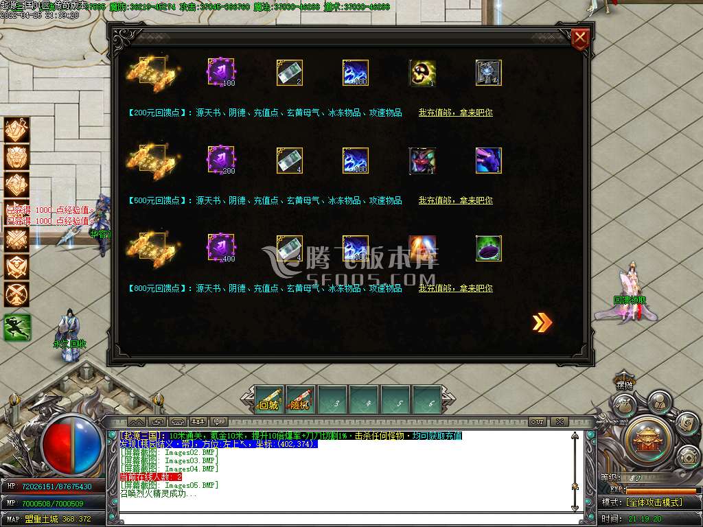 [200元回馈点] :源天书、阴德、充值点、玄黄母气、冰冻物品、攻速物品