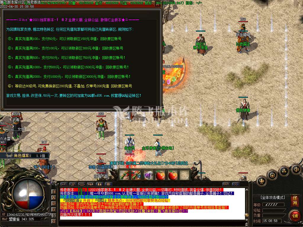 [公告]超级特色:装备全爆,材料值钱赞助可打,散人花时间称王!