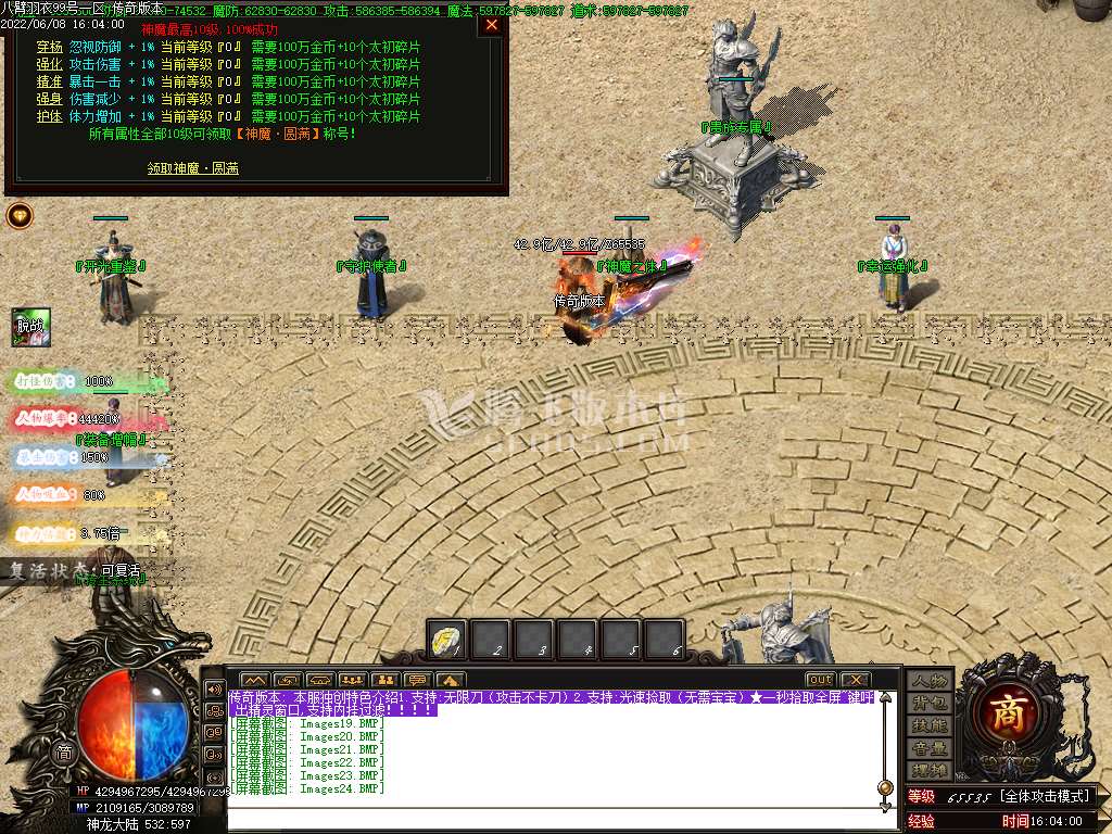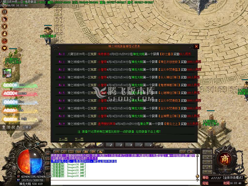 6月八臂羽衣神器单职业传奇服务端-飞升之地-西方神话-出装记录-装备增幅