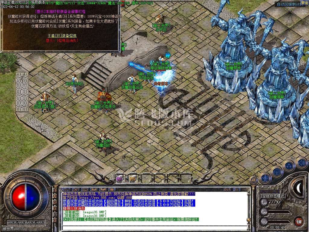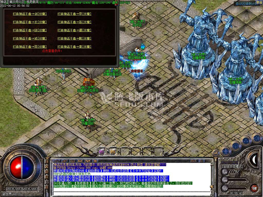 散人先期发育、逐级下地图 打转生神石 (新手地图以上到四转之前爆率差不多慢慢刷)55级地图小怪爆神话王者装备