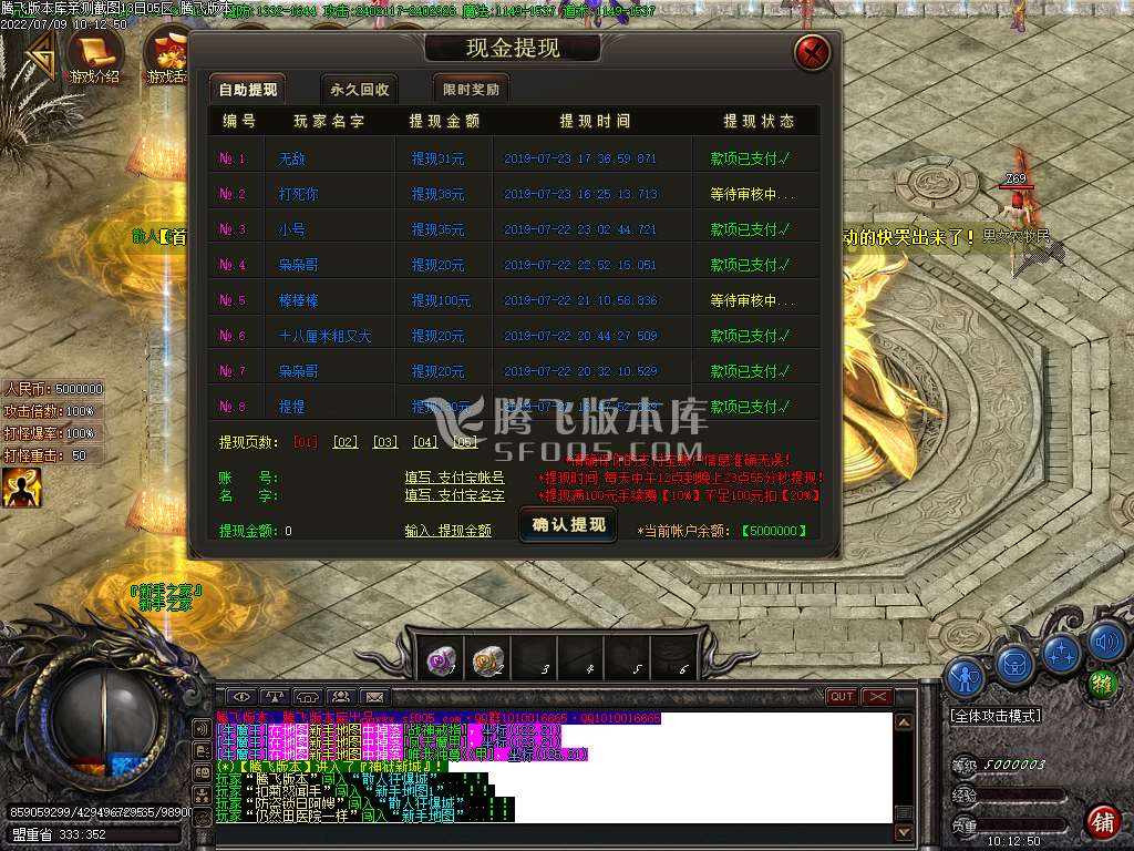 【充值比例】本服只需50元回馈!一个小时就能打出来回馈 !
