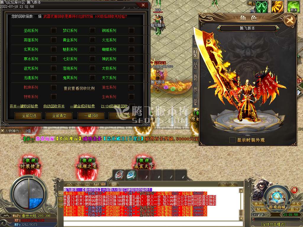 3.条件优势1转区不限制次数,不做其它服那样只能转一次的 游戏不得取空格!及其他敏感字作名字!系统自动封号处理!