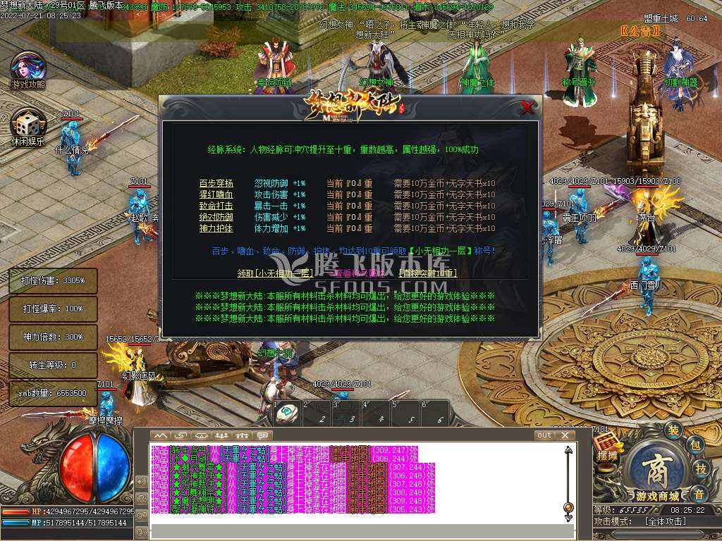 5、300元黄金.前往二大陆直接升20重满经脉(附带魔法盾)