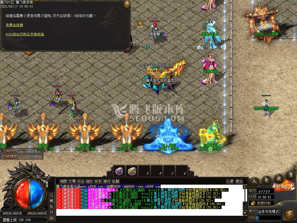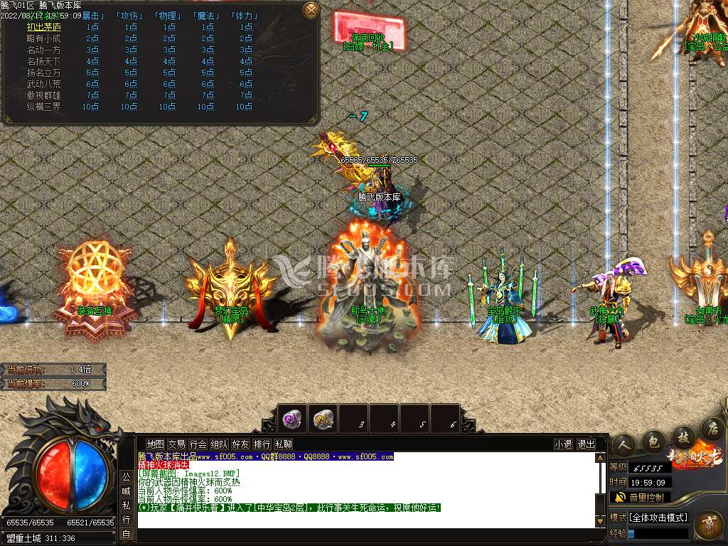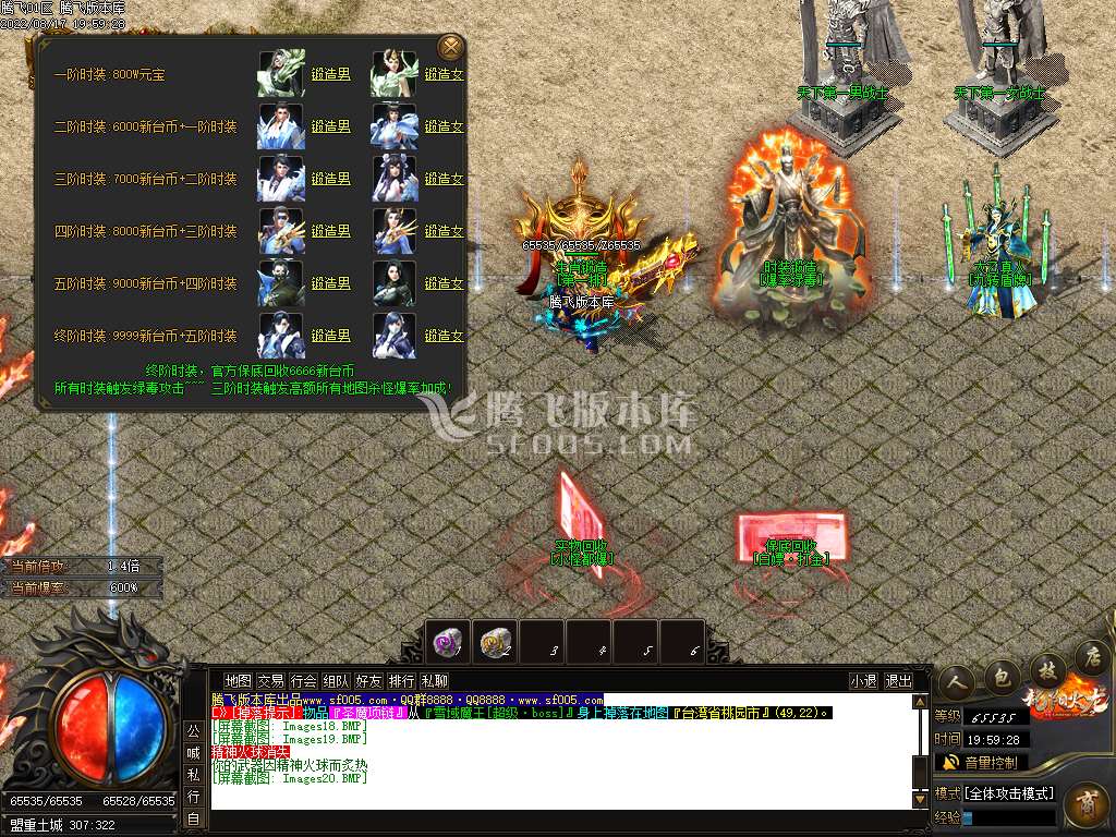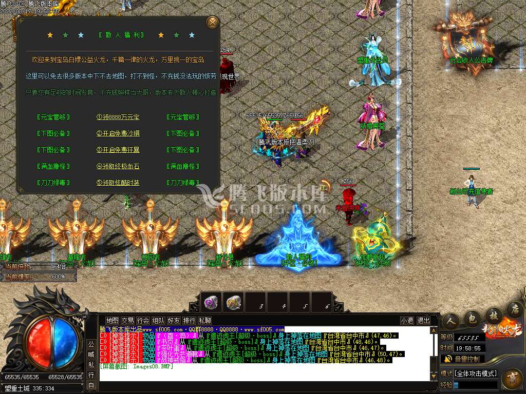 上线第一件事土城右下角 2个NPC领 2.0腰牌、一星神骰,宝岛·骷髅怪 元宝 沙捐 狂暴 时装 血石 QQ群码是666888
