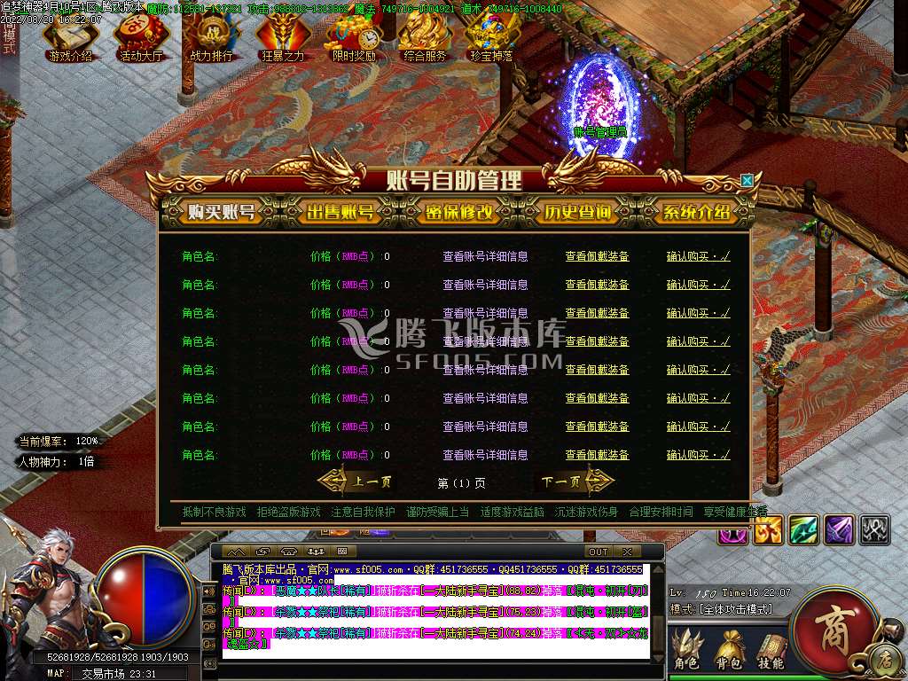 (游戏介绍) :本服无比例,没有内部充值,数据号,一切充值走平台!
