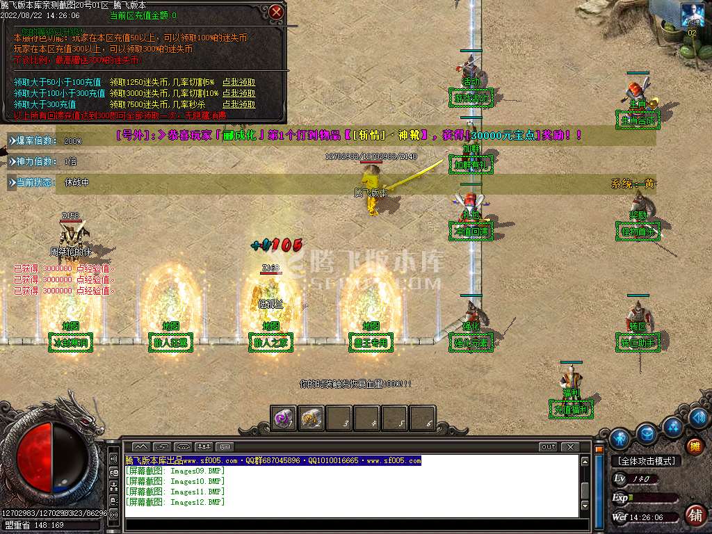 【充值领取 88元紫钻】/@88>:< 上线1.2倍神力+1.4倍爆率+泡点经验4倍+紫钻宝宝