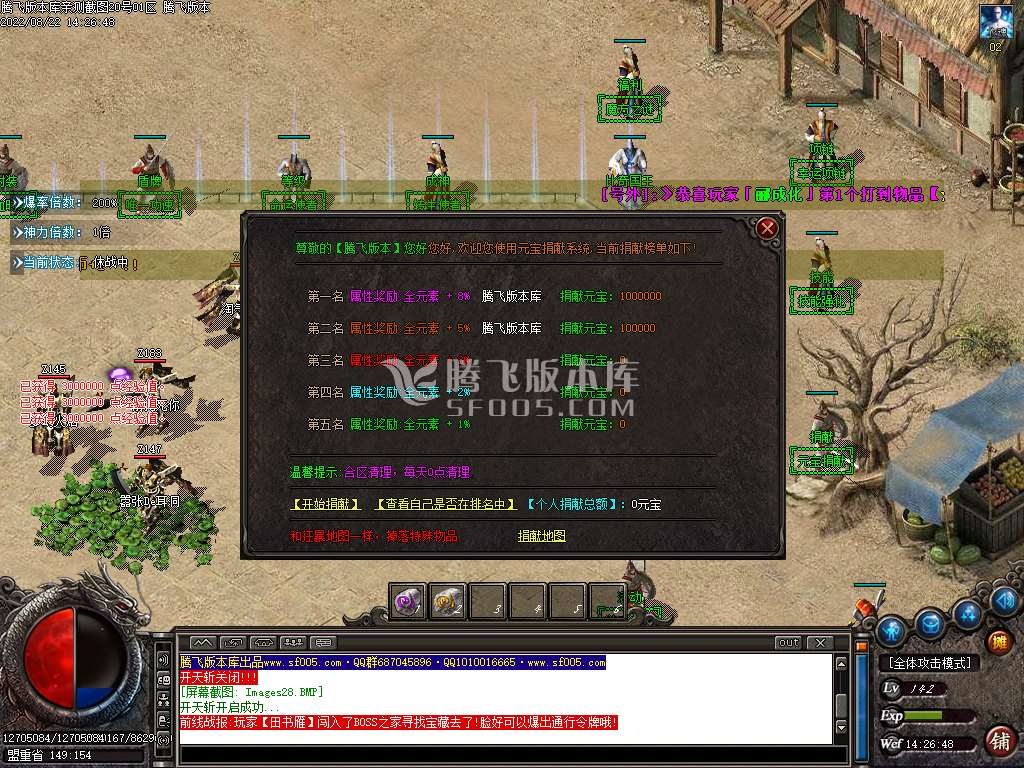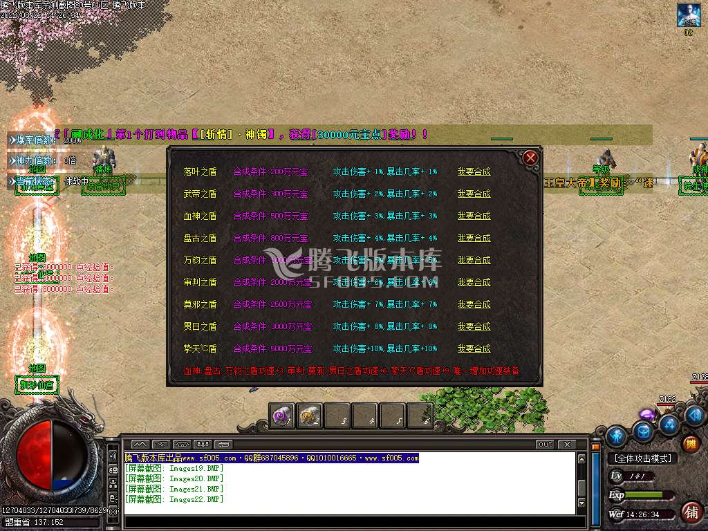 5.散人玩家优先打出一级会员,首爆(元宝) 首杀(迷失币) 迷失币可以兑换全服所有货币