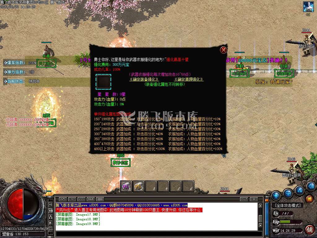 1.上线领取Q群礼包 赠送三件特殊BUFF神器,打怪即可升级。