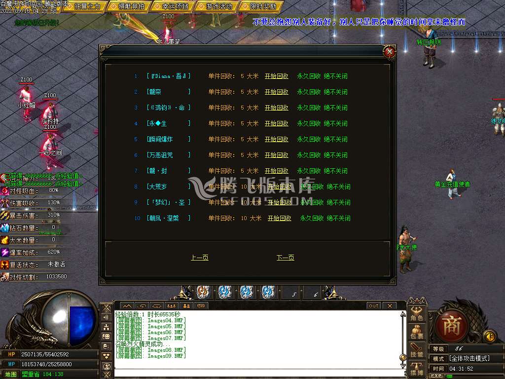 3.丰厚的沙巴克奖励.还传奇界一片净土.
